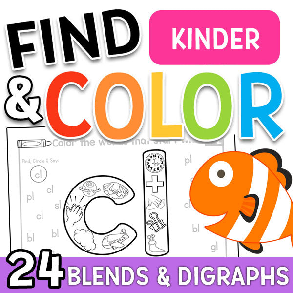 These awesome little worksheets help children identify blends and digraphs. Hidden inside the large letters are pictures! Some match and some do not. Children find the words that have the beginning blend sound or digraph and color them. They then choose two of the words they found to write on the lines.
