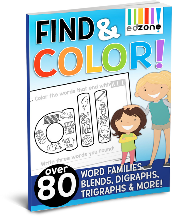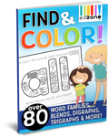 This set includes 82 Find, Color, & Write worksheets.  These page include beginning and ending blends, as well as digraph and trigraph clusters. First, students find and color the pictures to match the word family or blend.  Next, students write two of the words they found on the lines below.  For blends, digraphs and trigraphs, students also find and circle the correct letters as shown above.