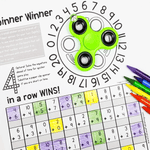Finish out your addition unit with these fun printable 4-in-a-row-bingo games. Place a small sticker on one of the arms of the fidget spinner, then slowly spin to reveal your number. Find an equation on the board that equals that number and color in the box. Take turns spinning and coloring until someone gets 4 in a row to win! This set includes three different gameboards.
