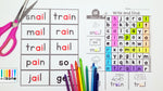 This is a simple worksheet for students to begin to practice reading their new vowel team. Students place their finger on the dots and follow the path as they read. Students then spell the word by coloring in the correct letterboxes for each word.