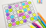 Students practice reading their weekly sight words with this fun coloring activity. This is a great opportunity to use bingo daubers, counters or other hands-on-manipulatives. Students choose one color for each sight word in the center square then search and color their words circles. Optional: Call out a few of the other sight words for students to find and dab. This is a great way to review previous words.