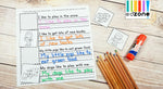 Sight Word Sentences: Students use their fine motor skills with cut and paste scissor activities! Kids will cut the picture words and match the correct sentence. Then, students write a simple sentence on the line. This allows kids to learn grammar and sentence structure easily and in an engaging way!