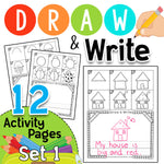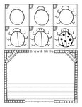 12 Step by step direct drawing lessons with space for writing a sentence to match.