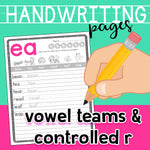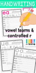 Description eBook PDF Format This set includes 27 handwriting worksheets focusing on vowel teas and controlled R sounds. Each page displays 5-6 different words with matching illustrations.  Students practice reading...