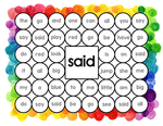 In the center of each sheet, you will find one of forty focus words from the pre-primer list. Students will dab, using a bingo dobber or marker, the words that match the center focus word.
