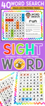 Learning Sight Words has never been so fun! Each page includes multiple ways to find the sight words, space to wite the sight word, and space to write other words found.