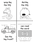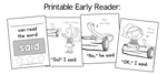 Each booklet takes a single sheet of paper and is folded to make a 4-page early reader. To assemble fold in half horizontally, then fold again in half vertically so that the title page is on the cover of the booklet. Students write their name on the cover page and color a star for each time they have read the book. For extra practice encourage students to underline or color their word as they find it in the story.