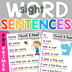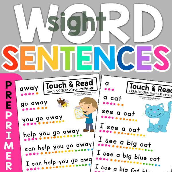 40 Sight Word Sentence Worksheets featuring Dolch 220 Pre-Primer words. Each sheet focuses on a single sight word for students to practice as they read. A new sight word is added for each row the student reads, until a complete sentence is revealed at the end. These sentences are tightly controlled for extra practice and mastery of specific sight words. Print multiple pages per sheet to make small reading booklets for students.